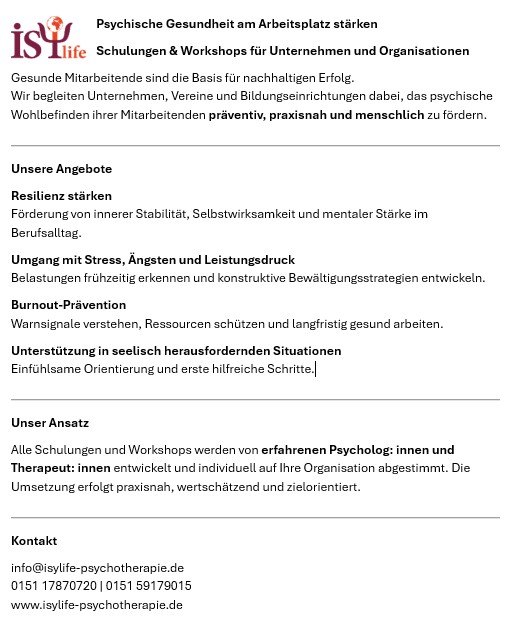 Psychische Belastungen und seelische Krisen sind hochaktuell und begegnen Menschen im Alltag immer wieder. Häufig entstehen Unsicherheit und Hilflosigkeit, wenn es Personen im nahen Umfeld – etwa am Arbeitsplatz, im Freundes- oder Familienkreis – psychisch nicht gut geht. Vor diesem Hintergrund wurde ein niedrigschwelliges Erste-Hilfe-Konzept für psychische Notlagen entwickelt, das sich an klassischen medizinischen Erste-Hilfe-Kursen orientiert und nun evaluiert wird.
